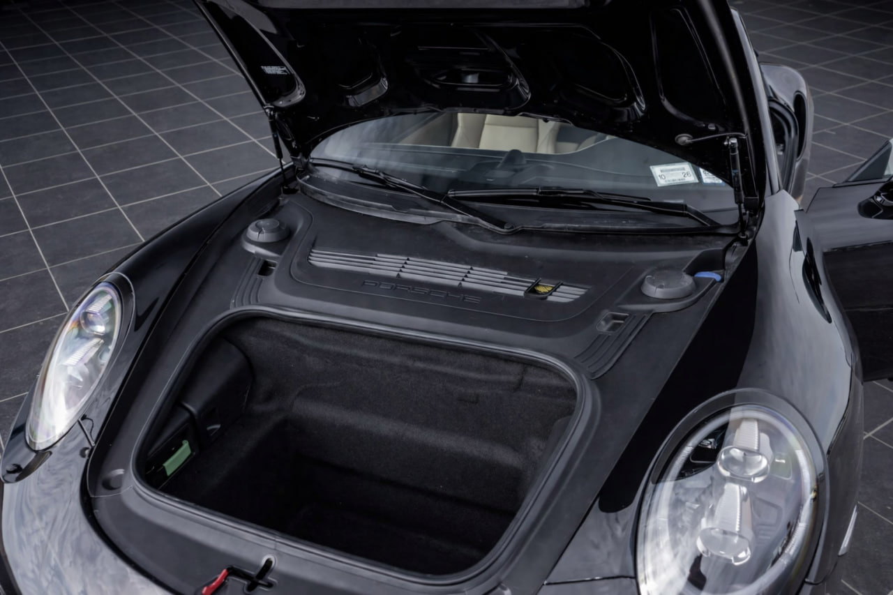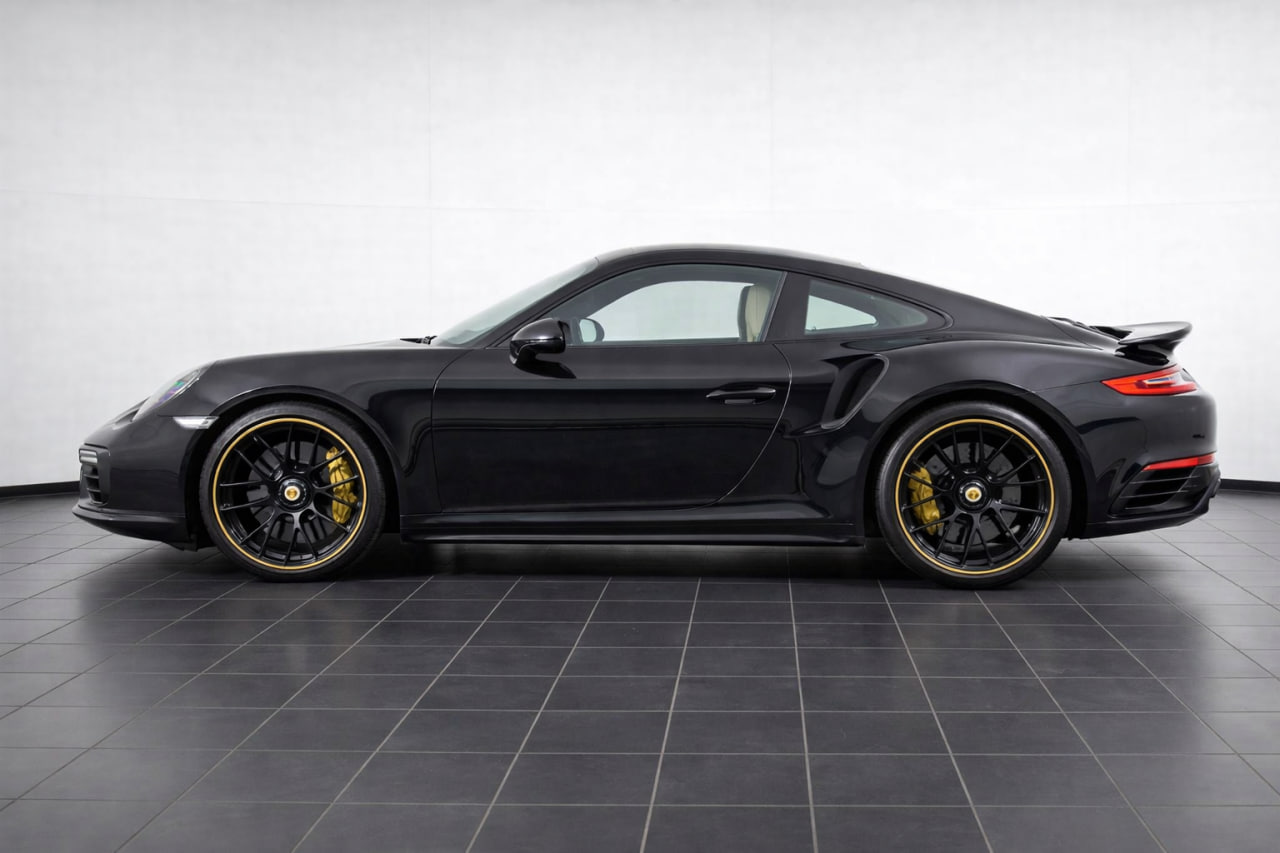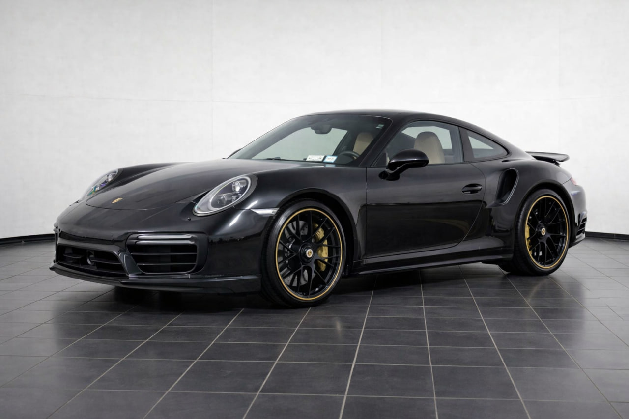 This 2017 Porsche 911 Turbo S Coupe shows 15,945 miles and was equipped from the factory with the front-axle lift system, Power Steering Plus, a Burmester premium audio system, adaptive cruise control, and heated as well as ventilated front seats upholstered in Luxor Beige leather. Motivation comes from a twin-turbocharged 3.8-liter flat-six engine paired with a seven-speed PDK dual-clutch transmission, sending power to all four wheels through an electronic limited-slip rear differential. Finished in Jet Black Metallic, the car also features the Sport Chrono Package, 20-inch center-lock wheels, Porsche Ceramic Composite Brakes, LED headlights, a rearview camera, and Lane Change Assist.